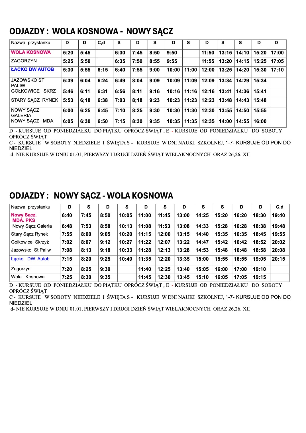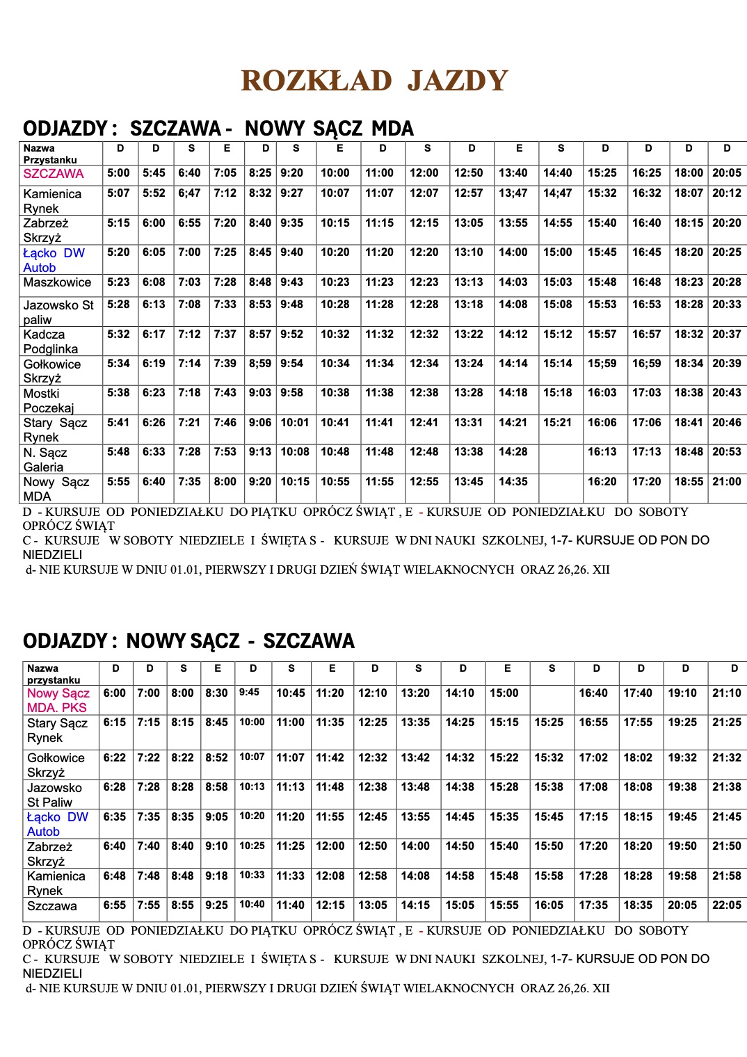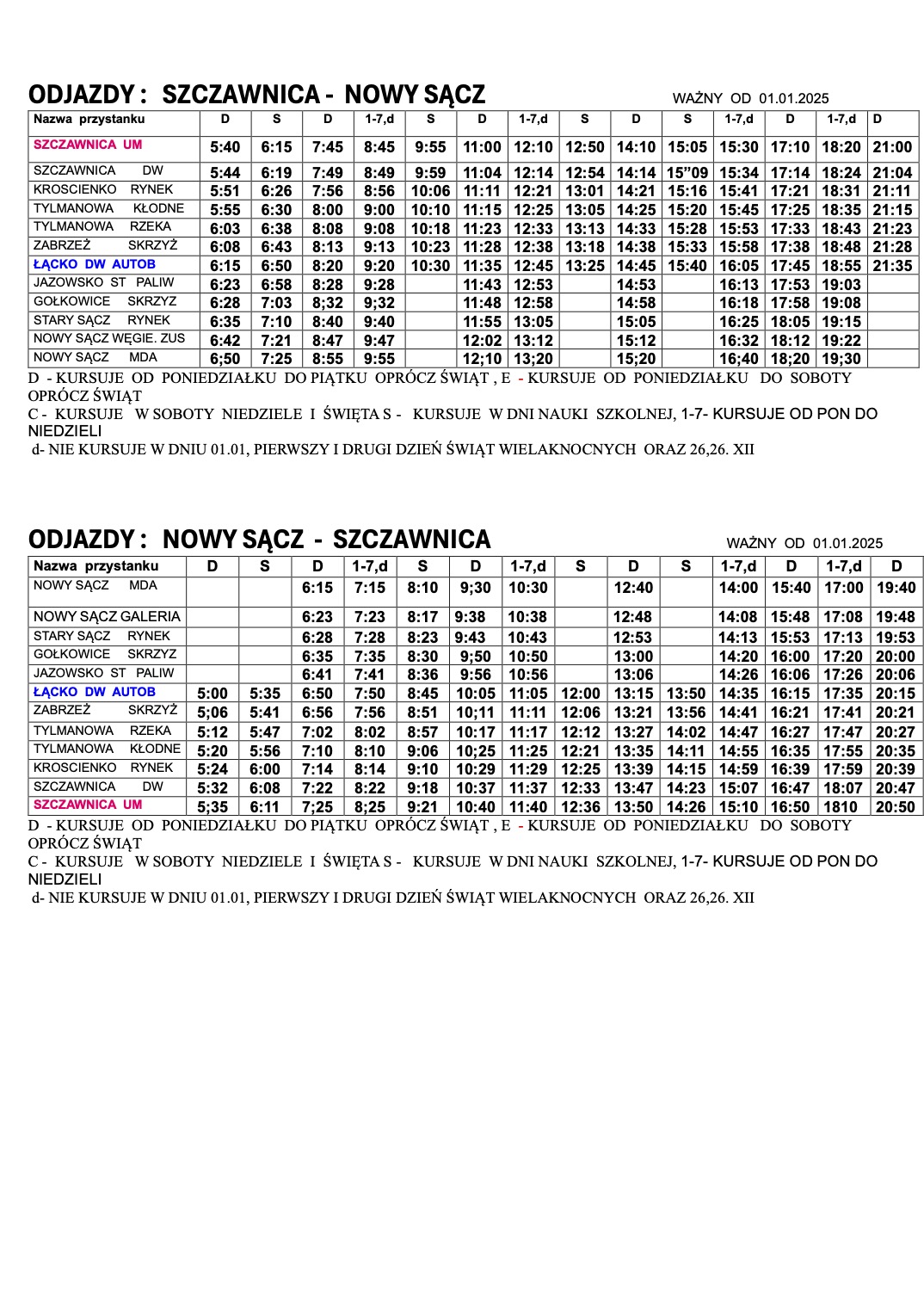 Rozkład jazdy ważny od 01.01.2025